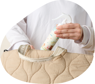 スプレータイプのため、片手で手軽に使用でき、動き回る赤ちゃんのお手入れもスムーズに行えます。腕やからだにスプレーするだけで簡単に塗布でき、忙しい外出前や外出先でのUV&保湿ケアにも適しています。