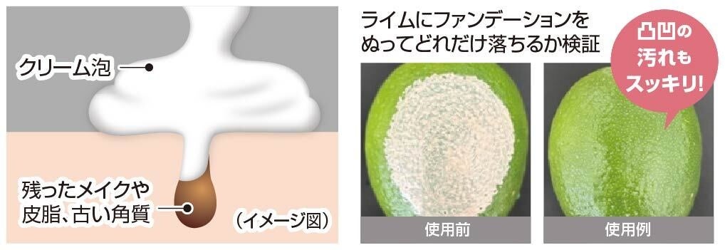 角栓崩壊成分配合のクリーム泡が、毛穴落ちしたメイク&角栓を緩めながら、絡め溶かします。