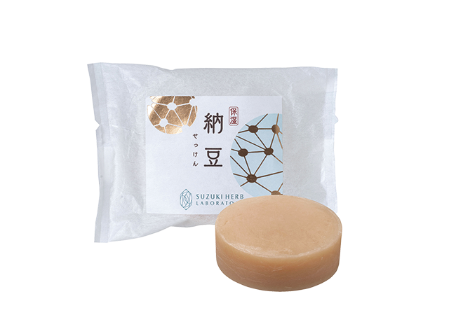 納豆ローションにも含まれる「ポリグルタミン酸」、植物性コラーゲンの「ナットウガム」など、美容液にも十分使用できるハーブエキスをそのまま練り込んだ贅沢なせっけん。キメ細かく濃密でもっちりとした泡で、毛穴の汚れまできれいに取り除きながら美肌成分を肌にいきわたらせます。