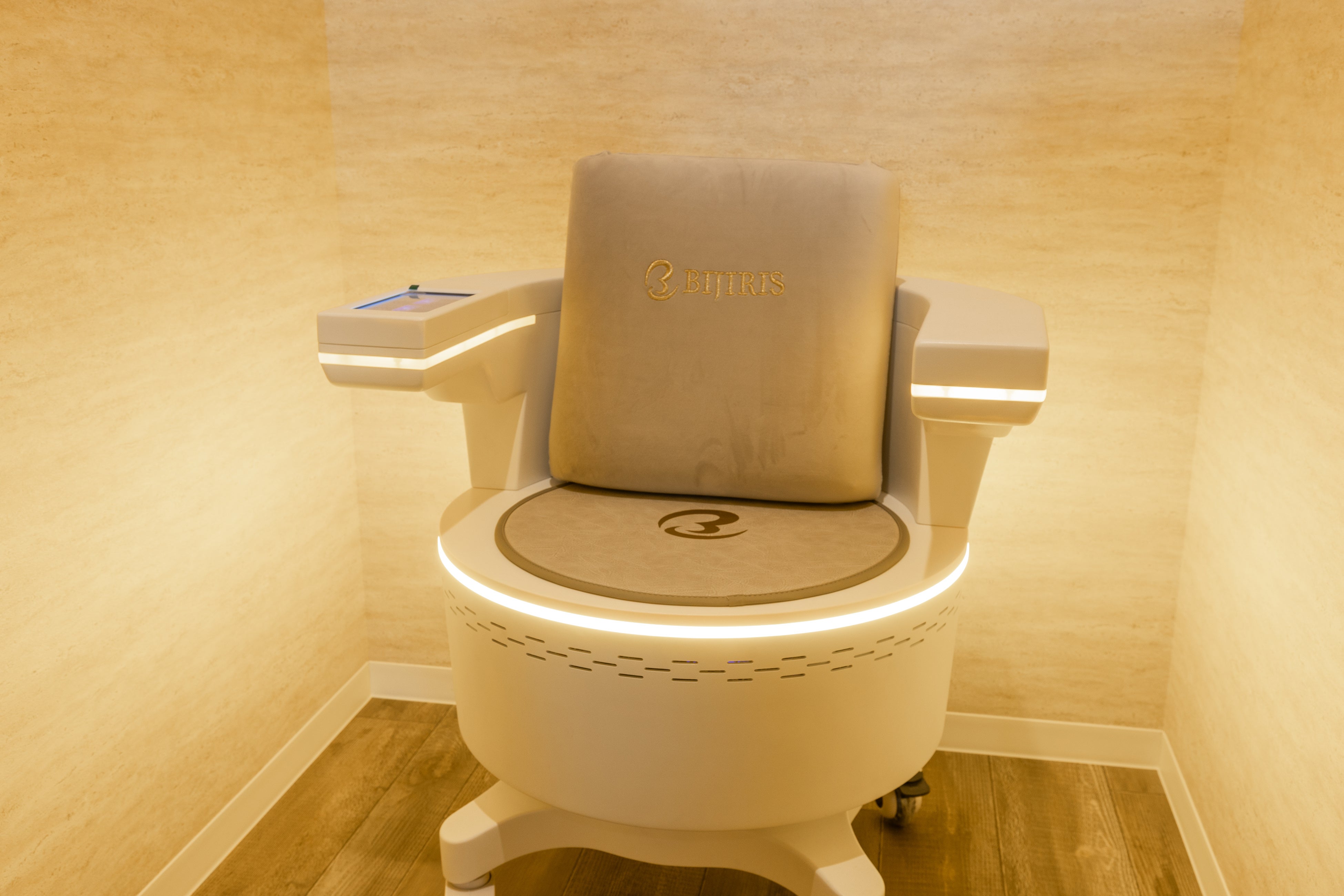 座るだけで骨盤底筋をケアする「FIT-CHAIR」、インナーマッスルを効率よく鍛える「FIT-SHAPE」などのアミューズメントサービスを完備 。