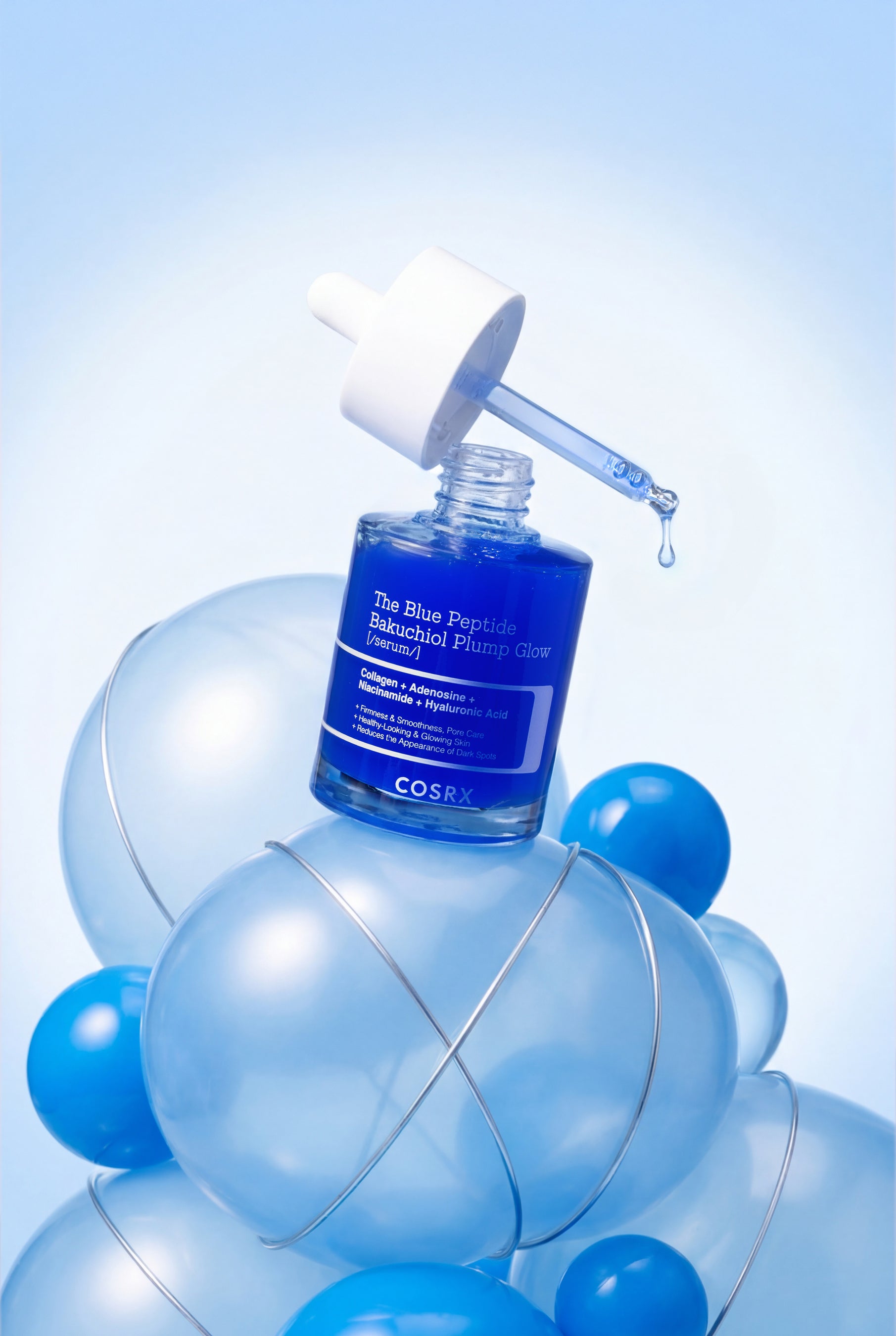 万能成分ペプチドの中でも、各種論文や研究でその効果が認められている「コッパーペプチド」を贅沢に配合し、縦毛穴ケア・弾力ケアができる美容液を開発。コッパーペプチドは原料そのものが鮮やかなブルーカラーを帯びているため、COSRXでは分かりやすく「ブルーペプチド」と名付けました。