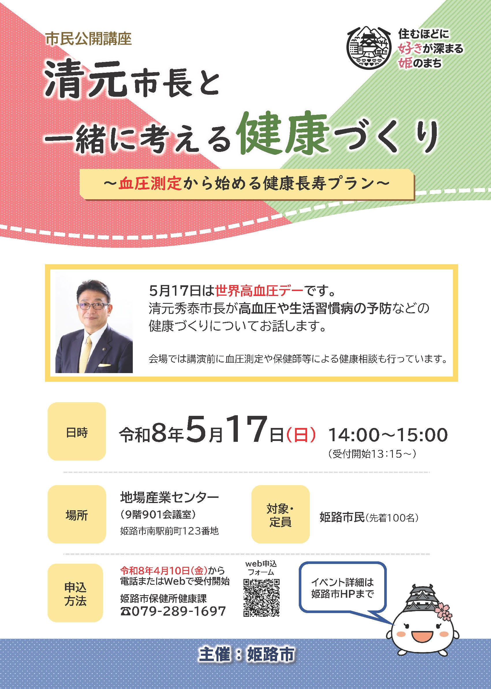 清元秀泰・姫路市長が、高血圧や生活習慣病の予防など健康づくりについてお話しします。