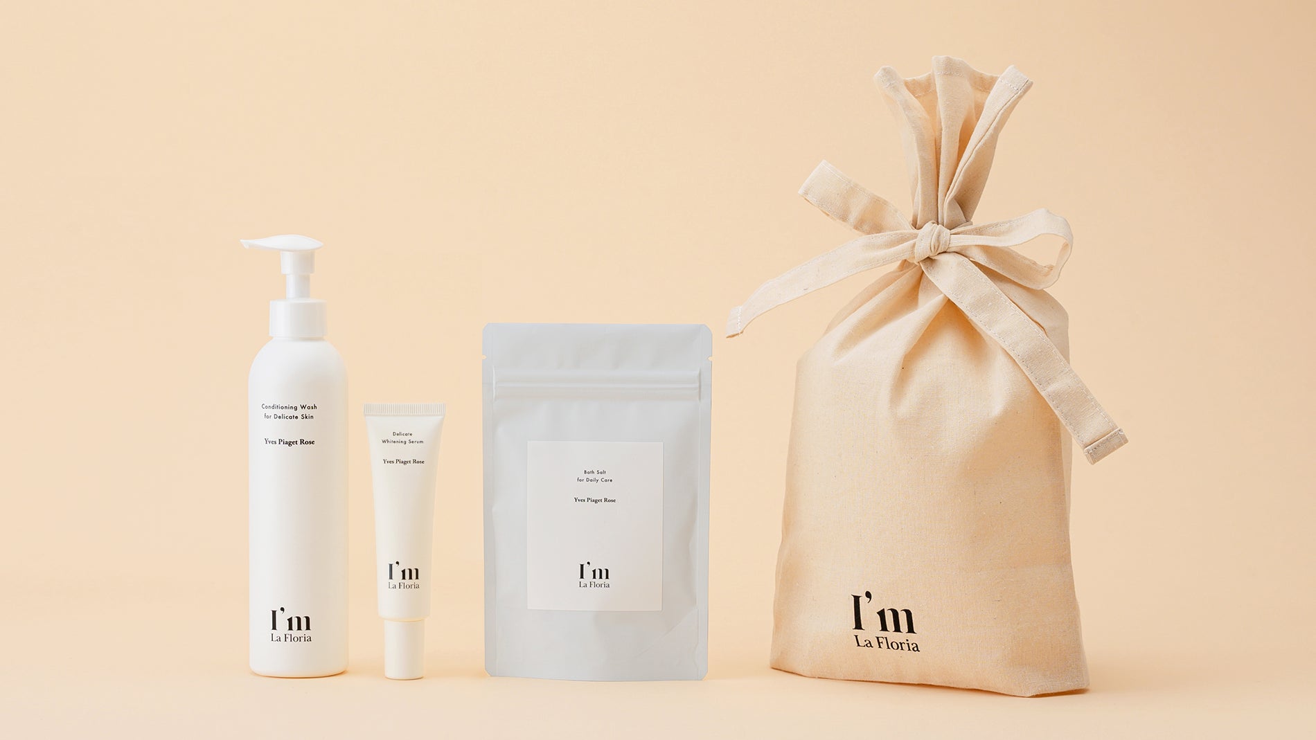 デリケートゾーンだけでなく全身も洗えるボディウォッシュと、肌に透明感のあるツヤを与えるブライトニングセラム。新発売したヒマラヤ岩塩を採用したミネラル豊富なバスソルトと、オリジナルバッグも入ったお得なセットです。