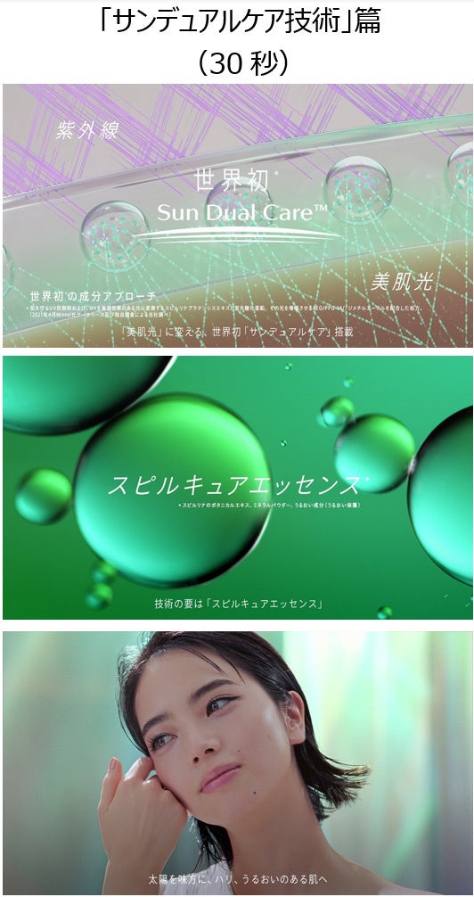 さらに、“紫外線をカットすると同時に、太陽の光を美容効果のある光に変換する”世界初の成分アプローチ※2 サンデュアルケア技術のメカニズムを紹介する動画「サンデュアルケア技術」篇もYouTube限定で2022年2月15日(火)より公開します。