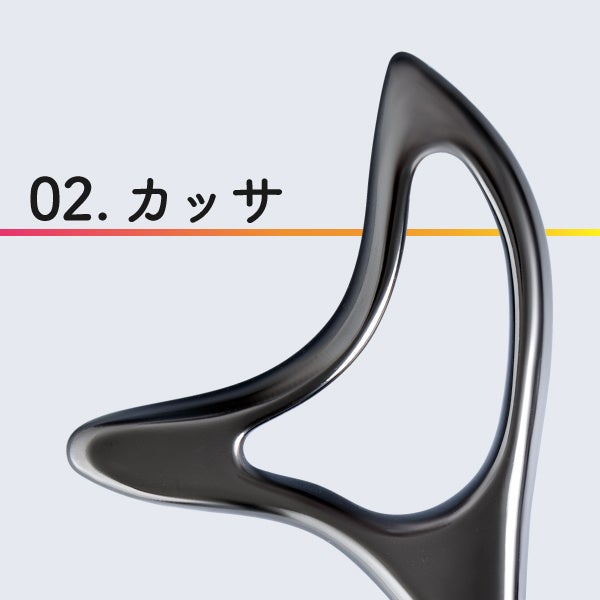 ②独特な形状のカッサで身体のカーブにフィットして気になる部分を優しく流す。