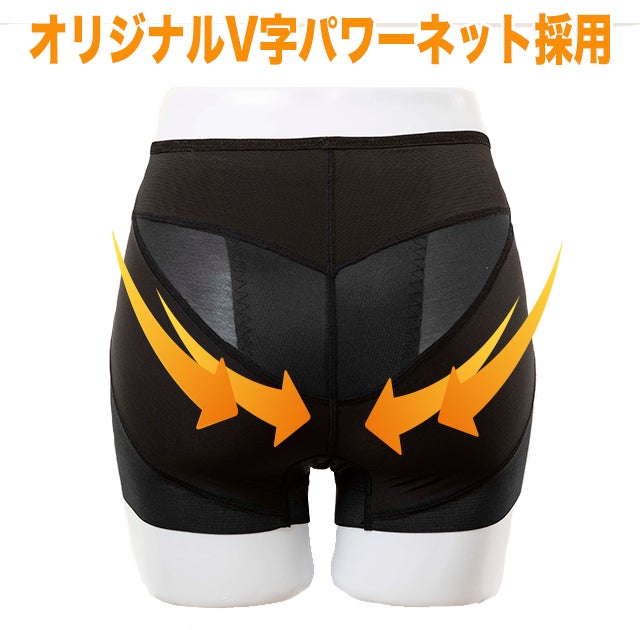 「オリジナルのV字パワーネット」により、着用中に骨盤をサポートします。