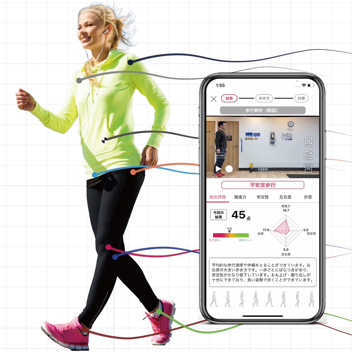 解析結果をふまえ、歩行特性に応じたトレーニングが2000程度のメニューから8種目じどう提案されます。