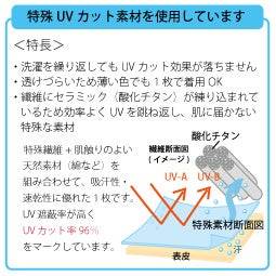 - 全製品がUVカット特殊素材の使用(練りこみと呼ばれる繊維に酸化チタンが練りこまれたもの)