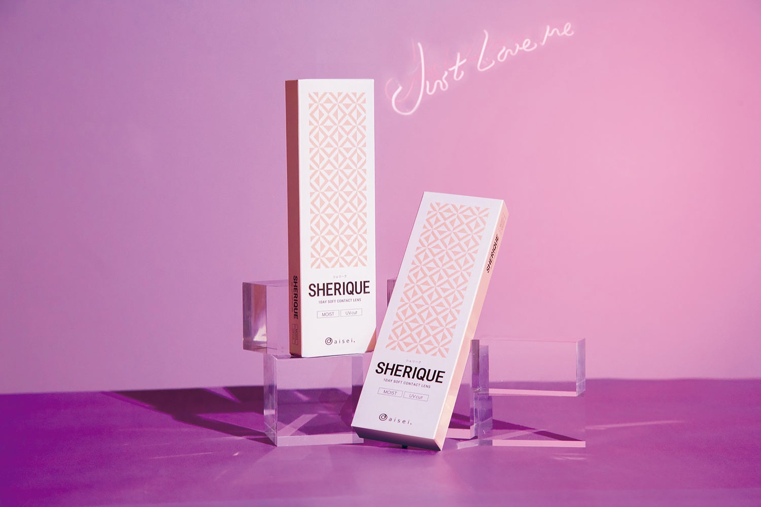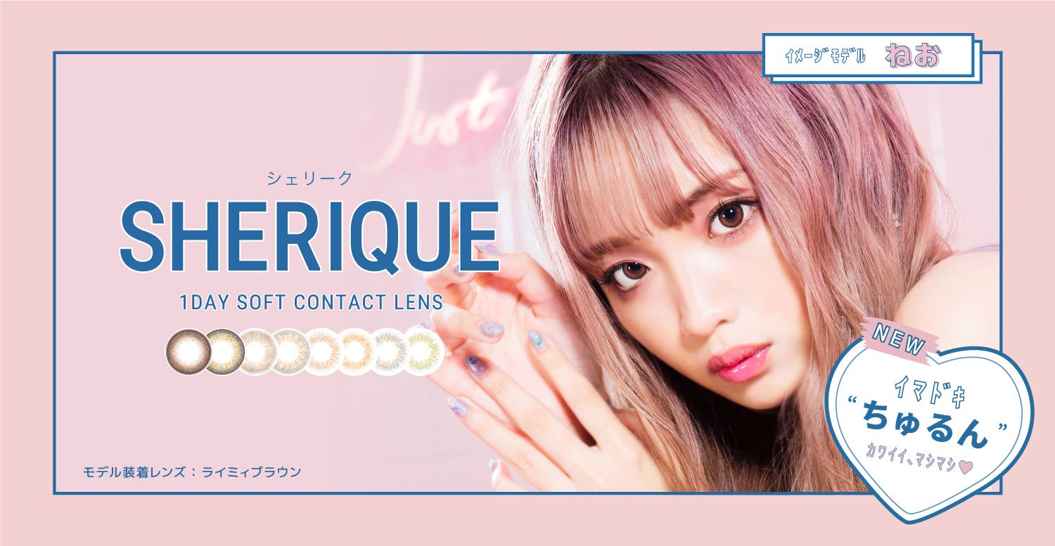 「SHERIQUE(シェリーク)」のブランド名は、「She:女性」と「Share:発信する」と「Unique:他にない、唯一のもの」の組み合わせから成っており、まだ誰も見たことない程の美しい瞳を世の中に発信し続けたいという想い込めたカラーコンタクトブランドです。全8色のレンズを展開中。