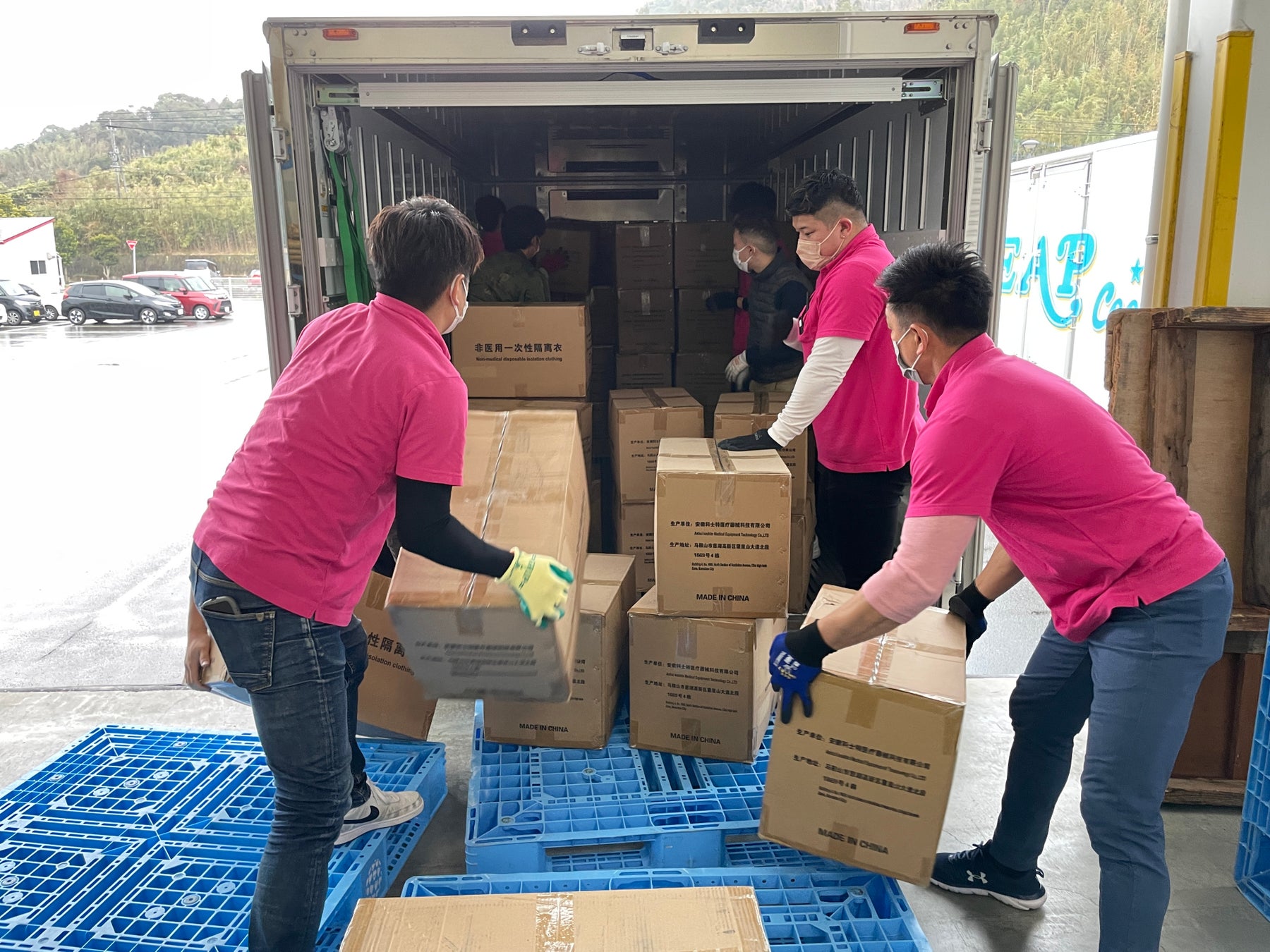 愛しとーとは去る2022年2月24日。福岡県看護協会にガウン型防護服3万枚とKN95マスク9600枚を寄贈し、主に訪問看護の現場でお役立ていただいております。