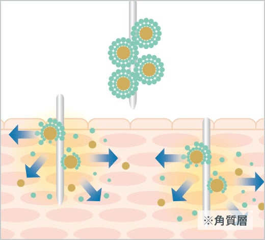 2. 「届ける」 マイクロニードル*5が角質層へ