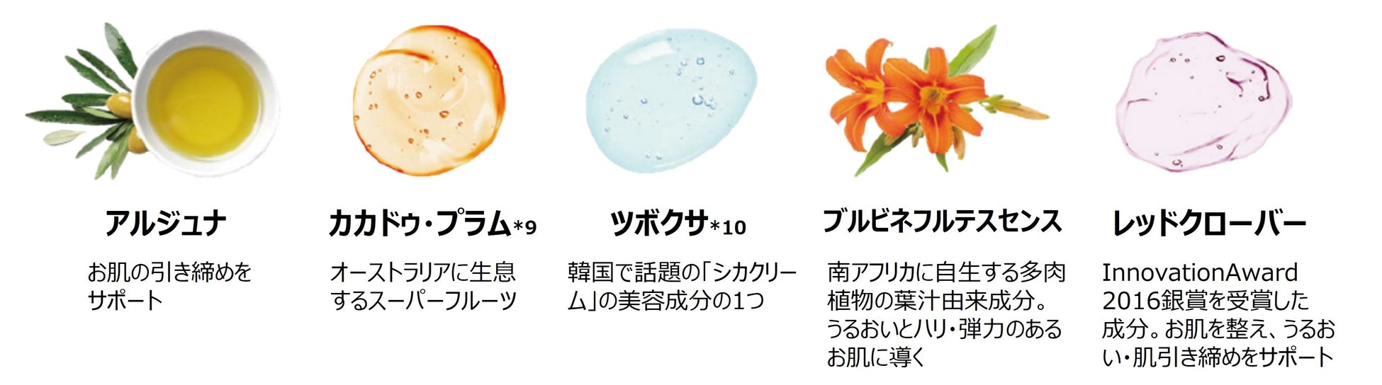 水のベールでうるおすサクラン®、3種のヒアルロン酸*6、3種のコラーゲン*7でお肌を柔らかくし、ソフトピールペプチドが不要な角質を取り除くことで、美容成分の導入*1をサポートします。