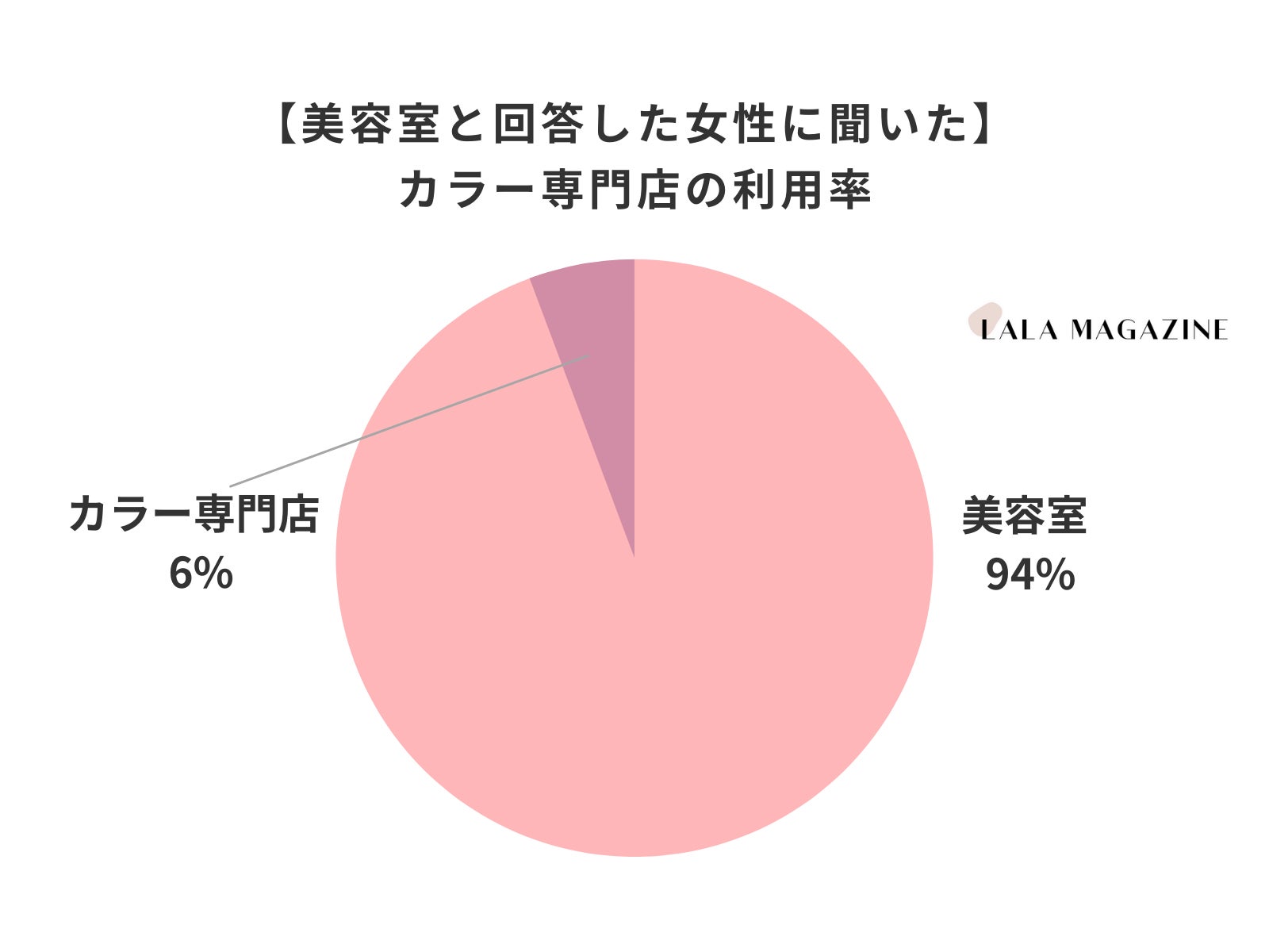美容室と回答された方の中で、カラー専門店を利用しているのは6%でした。