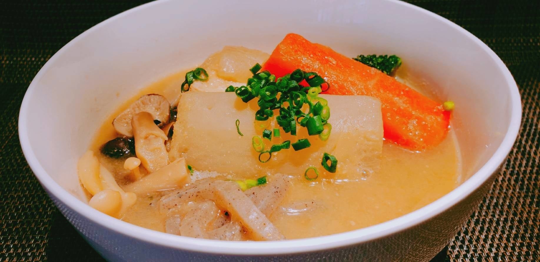 コロナ過で、より体に良いものを提供したいという料理長の思いが更に強くなり、誰もが大好きな『豚汁』に取り組みました。