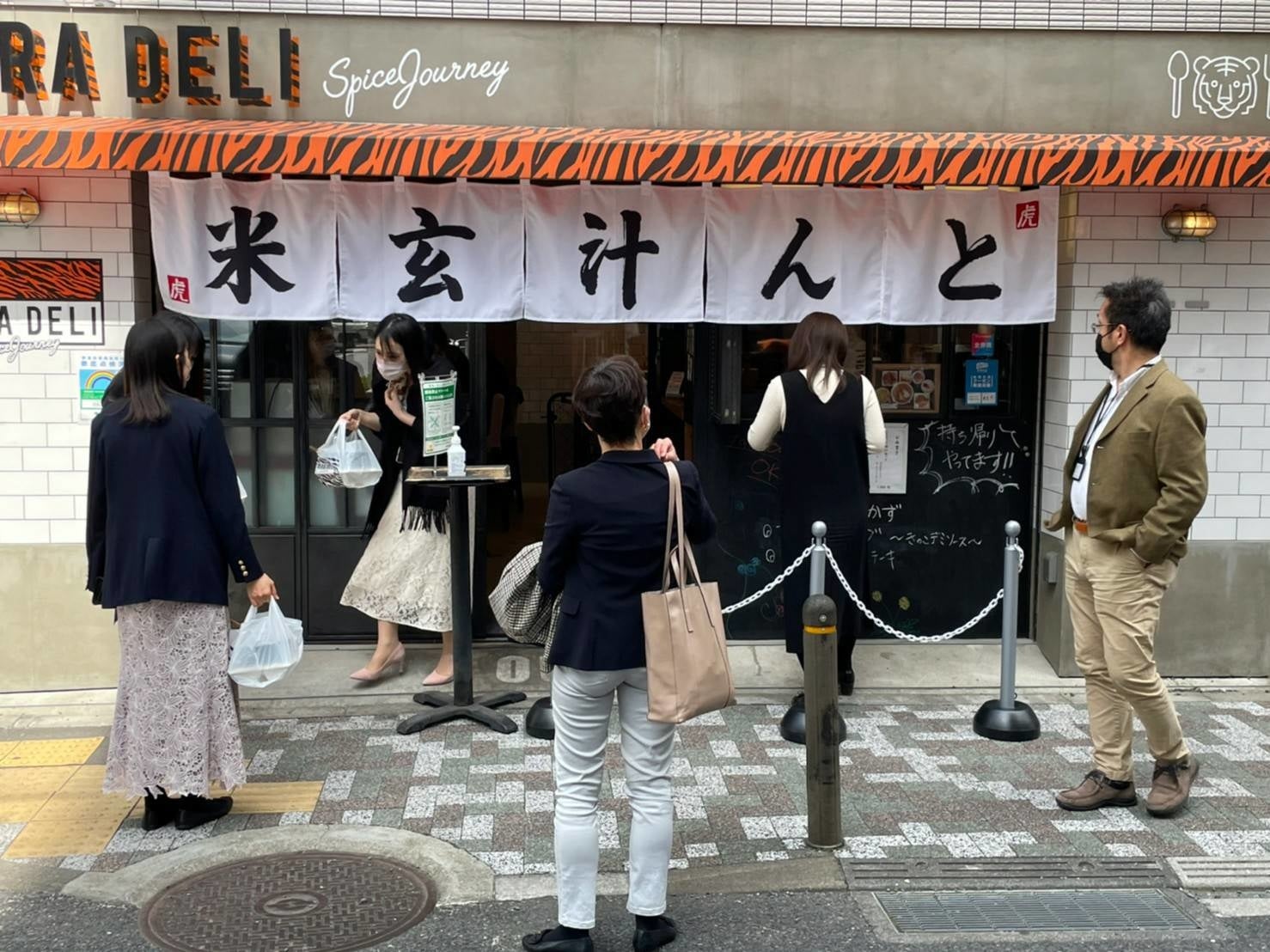 お店構えも以前の洋風から「とん汁 玄米」の大きな「のれん」を虎ノ門のど真ん中に掲げ元気にリニューアル!