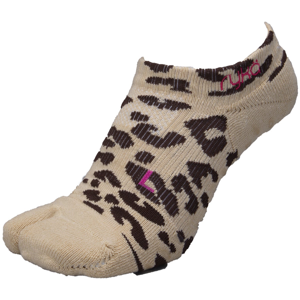 足袋の形状により親指が自由になり、力が入りやすく激しい運動にも対応。ダンスやエクササイズ時には安定したパフォーマンスを発揮する機能ソックスです。レオパード柄のショート丈ソックスなのでコーディネートのワンポイントとして普段履きにもご活用いただけます。