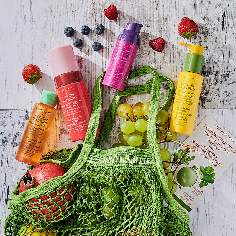 乾きやすいお肌、繊細なお肌、水油分バランスやエイジングサイン※1が気になるお肌・・・さまざまなお肌のニーズに応えるために、レルボラリオの有機農園から選び抜いたフレッシュフルーツや野菜由来のエキスを閉じ込め、肌質別に選べるフェイシャルケア製品を作りました。