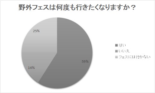 一方で、「いいえ」と答えた人も16%いました。野外フェスは人も多く、暑い夏場が多いためこれらが苦手な人にはあまり楽しめないかもしれません。