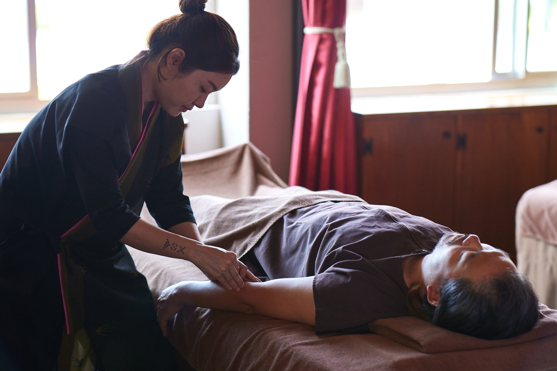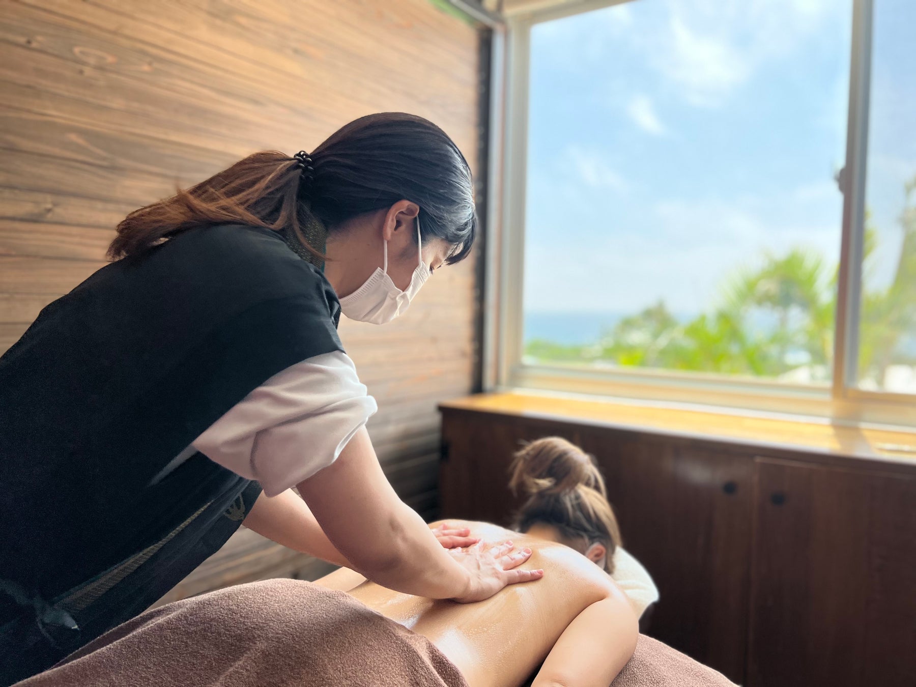 国家資格者による鍼灸施術により心身のバランスを整えながら県産ハーブオイル、ミネラル豊富なクチャパックなど、島の自然の力を用いて全身に働きかけます。