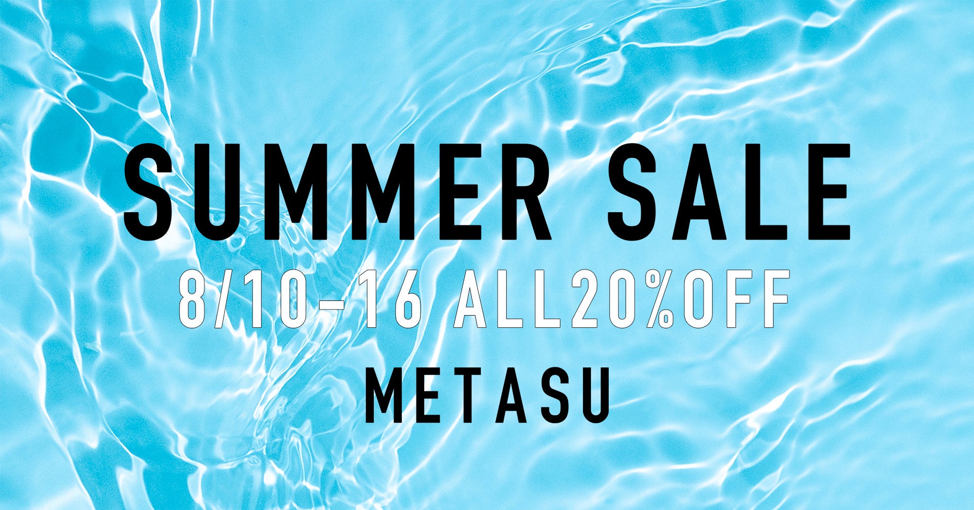 株式会社BLANKS(所在地:東京都世田谷 , 代表取締役:松木 優)は、CBDを配合したフレグランスやオーガニックオイルなどライフスタイルに特化した日本発のウェルネスCBDブランド「METASU|ミタス」にて、日頃ご愛好感謝を込めて、お盆期間限定(8/10-16)で、”全品20%OFF”のサマーセールを開催。(https://metasu.jp/)