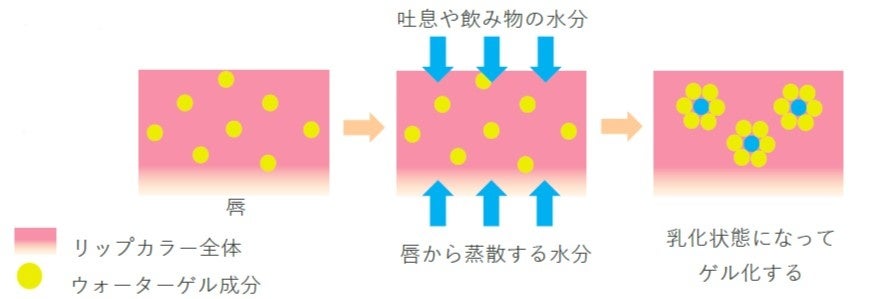 - 2. “ウォーターゲル成分”が水分を取り込み、うるおいが均一な唇が持続