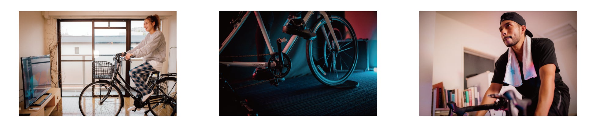 ゲームプラットフォーム“KINIX”では、スマートバイクトレーナーを用いて、最大6人が同時にリアルタイムで対戦する4つのパーティスタイルのゲームを体験できます。
