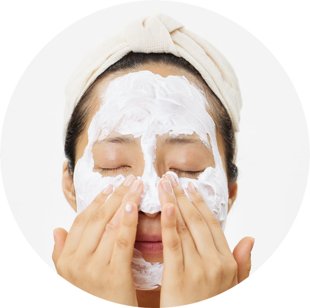 顔を濡らし、容器は上向きのままピンポン玉大目安を手に取り、お顔全体に広げます。