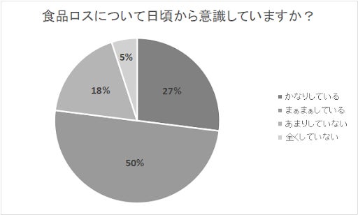 綺和美では、「食品ロスについて日頃から意識していますか?」というアンケートを行いました。すると、「かなりしている」27%、「まぁまぁしている」50%という結果でした。
