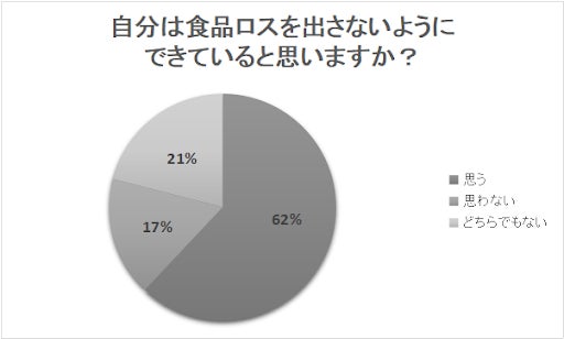 次に、「自分は食品ロスを出さないようにできていると思いますか?」というアンケートも行いました。すると、62%の人が「思う」と回答したのです。
