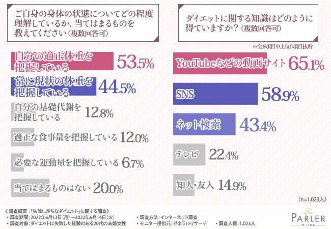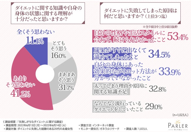 ダイエットに関する知識や自身の身体の状態への理解が不十分だったと半数以上が感じているようです。