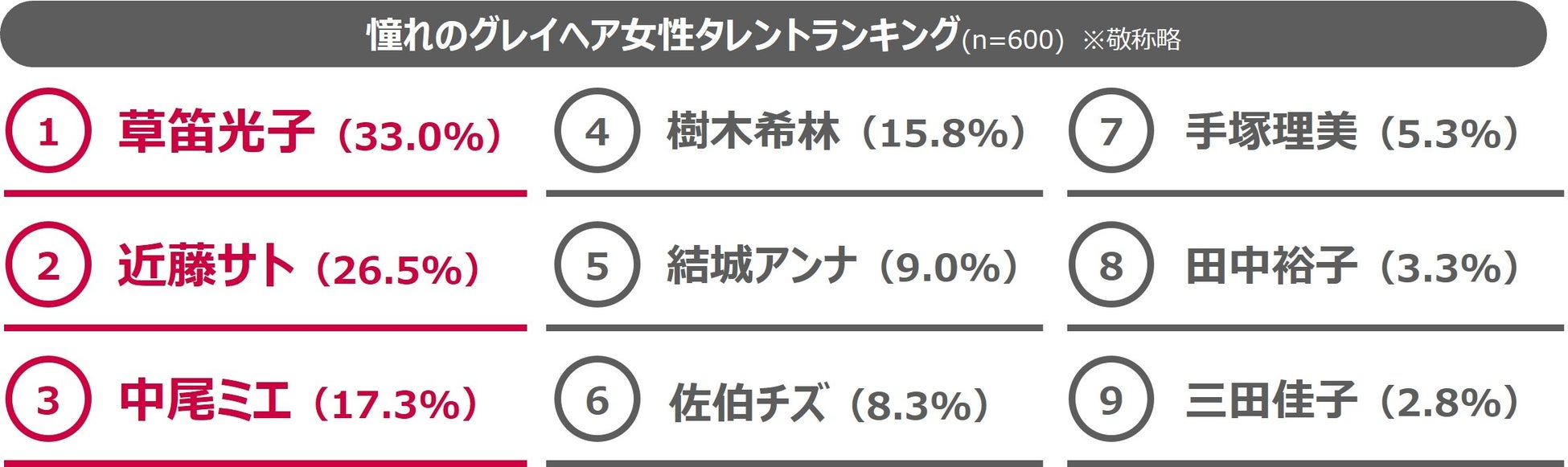 - 【TOPIC❺】憧れの「グレイヘア」女性タレントランキングを発表!