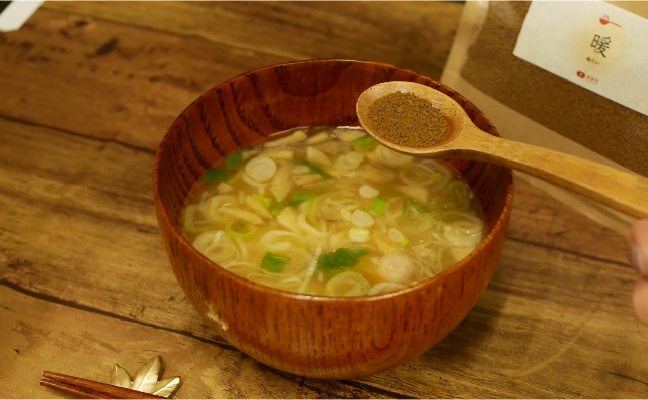 ベーシックな使い方は、180ml~200mlのお湯にティースプーン1杯の「暖-ぬくい-」を。
