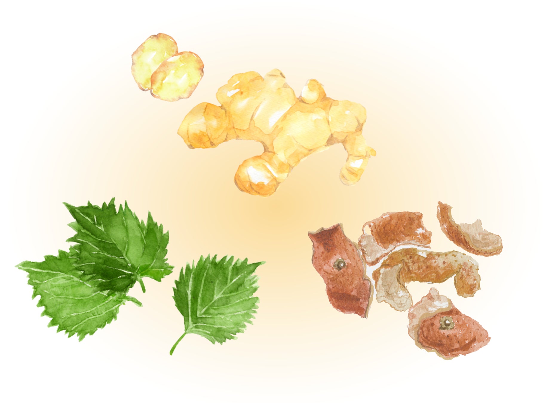 原材料名:ショウガ末(国内製造)、紫蘇末、みかんの皮末