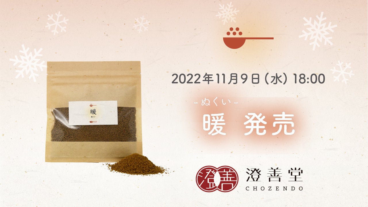 ブランドオープン告知動画はわずか3日で6万回再生を越え、高評価3400件を集める脚光を浴びた「漢方養生指導士ロン毛メガネ」がプロデュースするブランド「澄善堂」。女性の悩みに寄り添う商品「澄楽茶・澄潤妃」は絶大な支持を集め、多くのリピートをいただいています。ファン待望の第3弾商品は、和漢素材だけで作られた万能ジンジャースパイス「暖-ぬくい-」。巡らせてぽかぽかを呼ぶ、冬に向けた準備におすすめの商品です。