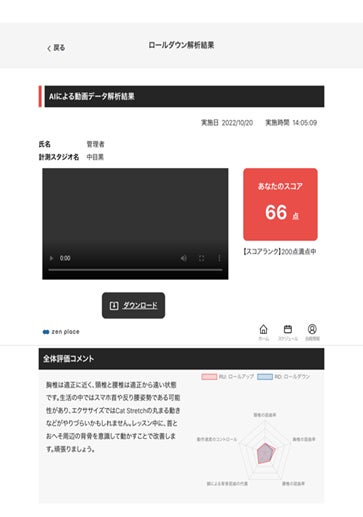 ※「動作速度のコントロール」はロールダウンアップの動作が一定であるか、理想の動きに対して近しいかを判定。