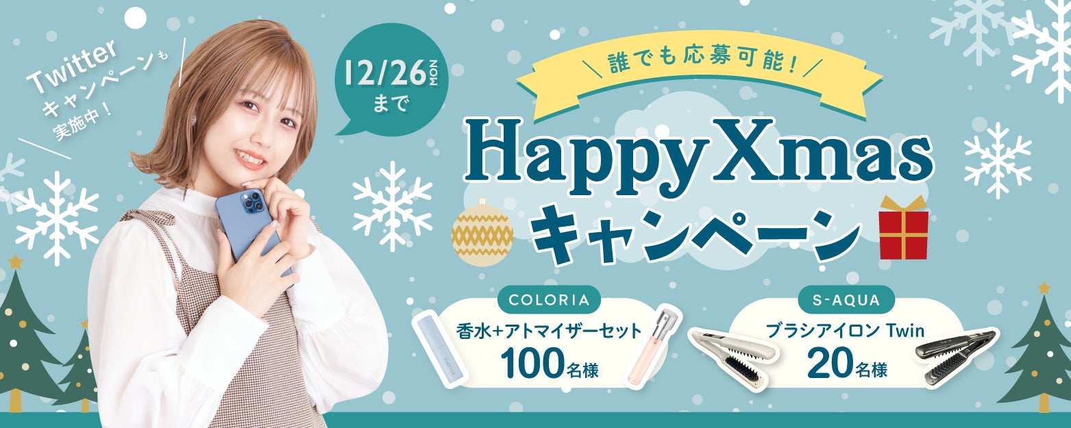 「Happy Xmas キャンペーン」は、アプリをダウンロードしている方なら誰でも応募可能なキャンペーンです。アプリ内のキャンペーンページから必要事項を入力して送信いただいた方の中から、抽選で「香りの総合プラットフォーム『カラリア』がセレクトした香水アトマイザーとミニモをイメージした限定色アトマイザーケースのセット」や「ブラシアイロン Twin」を合計120名様にプレゼントします。