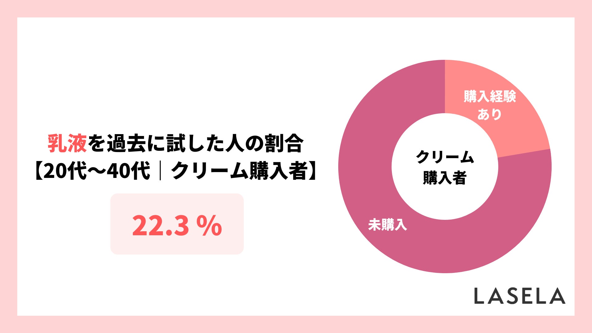 - クリーム購入者のうち過去に乳液を試した人は22.3%、辞めた理由は「保湿力不足」