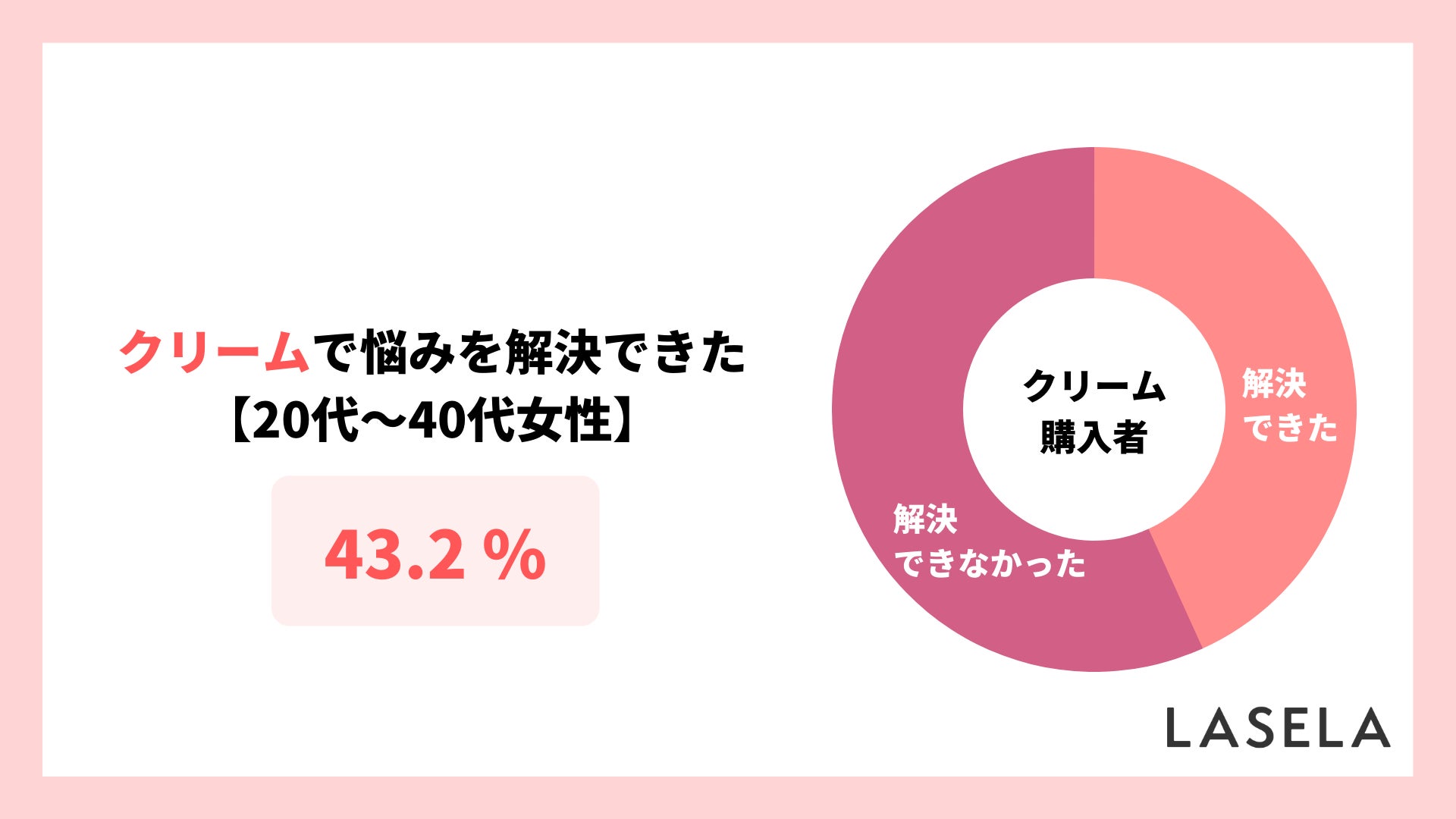 クリームを購入した人のうち、症状が改善できたと回答した人は43.2%で、約6割は別の商品で悩みを解決できたと回答しています。