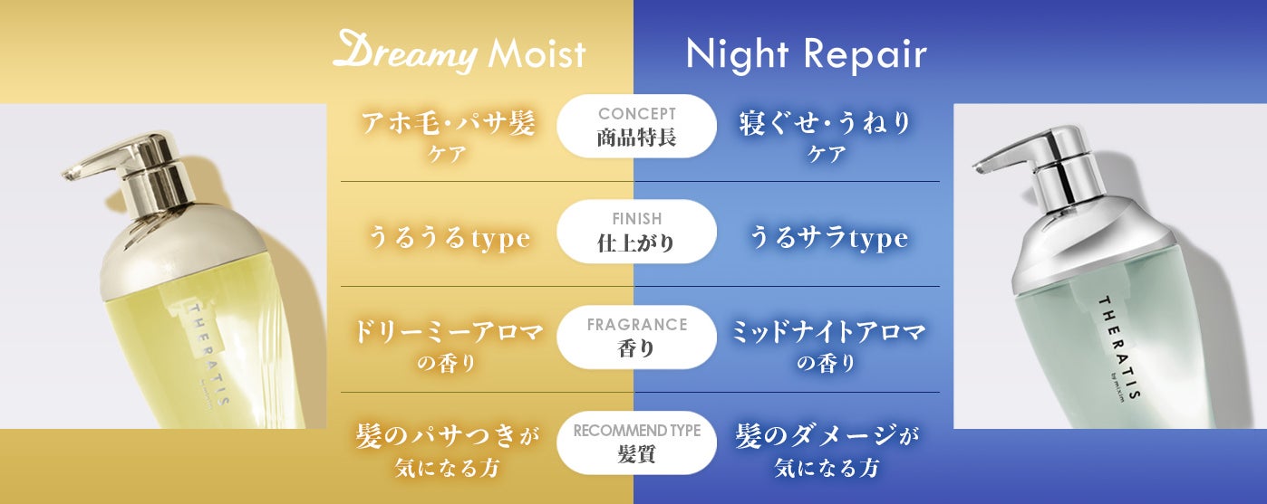 「睡眠学」「美学」「医学」の専門家3名と共同開発した、朝の髪悩みに特化し、寝ている間も睡眠環境をサポートする香りを処方したナイトケアブランドです。朝のスタイリング時にプチストレスを感じていた20代女性開発者が、『ライフスタイルが大きく変化する同世代の一日の始まりに余裕と癒しを届けたい』という想いから開発をスタート。2021年9月に「寝ぐせ・うねりケア」に特化した「セラティス ナイトリペア」、2022年9月に「アホ毛・パサつきケア」に特化した「セラティス ドリーミー」を発売しました。