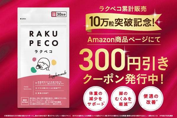 ●キャンペーン内容:ラクペコサプリを初めてご購入いただける方限定で、Amazon商品ページにて300円引きクーポンを発行致します。