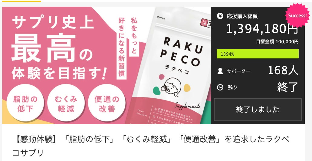 ◆ラクペコ累計販売10万粒突破記念!『12月限定 お客さま感謝祭』として初回限定300円引きキャンペーンを実施
