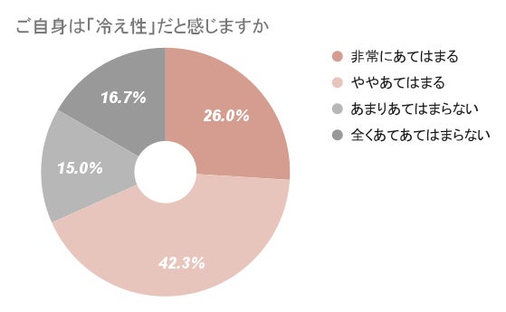 「ご自身は『冷え性』だと感じますか」との質問に対して、「非常にあてはまる」または「ややあてはまる」と答えた人が約7割(68.3%)との結果に。