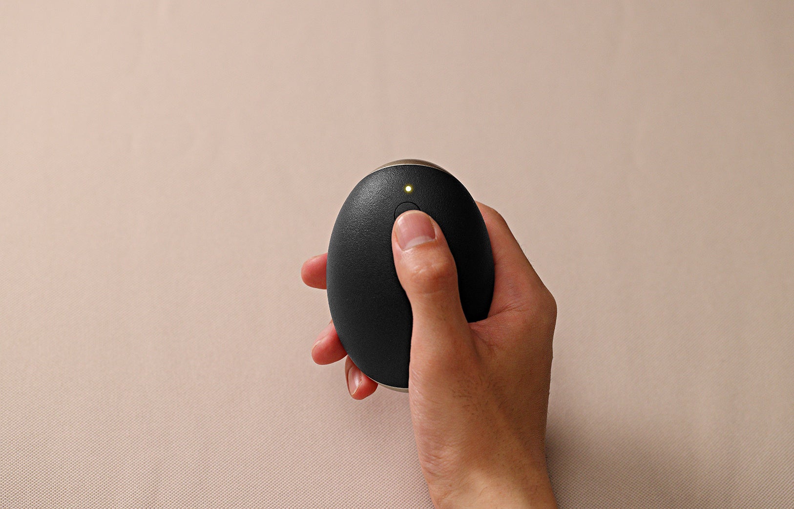 ℃-STONEは、ホットストーンセラピーをモチーフにした電子ガジェットです。最大44℃まで本体が温まり、3段階の温度調節ができます。