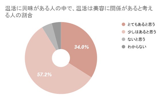 「温活に興味がある」と回答した人のうち、「温活は美容に関係がある」と回答した人は9割以上(93.3%)に。温活に興味がある方のほとんどが、美容と温活に相関関係があると認識しているようです。