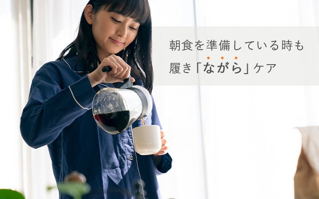 お出かけ前の忙しい時にもさっと履けるので「ながら」ケアが可能です。