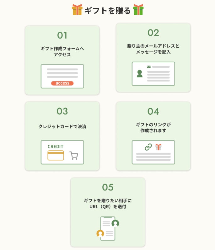 ギフトのURL(もしくはQRコード)をコピーして、贈りたい方へお好きなSNSやメールを使って送信すれば、プレゼント完了です!相手の住所やお名前がわからなくても贈ることが出来ます。