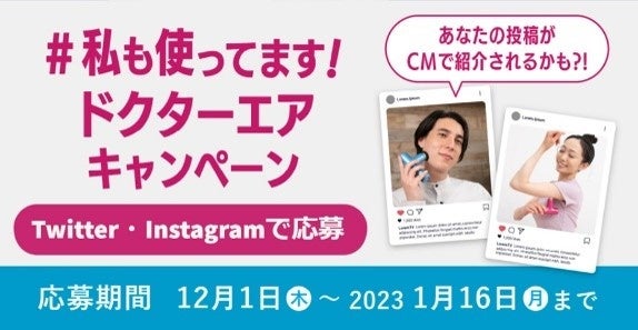 現在、「#私も使ってます!ドクターエア」キャンペーンも実施中!本キャンペーンは、2023年1月16日までの期間中にTwitterもしくはInstagram(フィード投稿のみ)にて指定ハッシュタグを付け、ご愛用いただいているドクターエア製品の写真をご投稿頂くことで応募ができます!