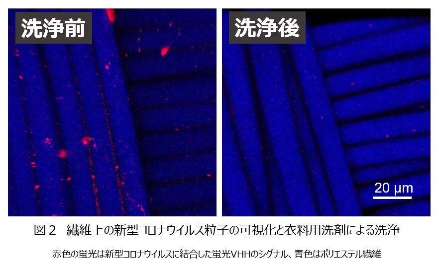 花王株式会社(社長・長谷部佳宏)ハウスホールド研究所は、国立研究開発法人理化学研究所(理事長・五神真、以下理研)脳神経科学研究センター細胞機能探索技術研究チーム、学校法人北里研究所(理事長・小林弘祐、以下北里大学)が設置する北里大学大村智記念研究所、株式会社Epsilon Molecular Engineering(社長・根本直人、以下、EME)と共同で、VHH抗体に蛍光タンパク質を組み合わせた融合タンパク質を用い、繊維に付着した新型コロナウイルス(SARS-CoV-2)を簡便に可視化できる可能性を見いだしました。この成果を応用することで、新型コロナをはじめとする環境中の危険なウイルスの存在場所の詳細がわかるようになるだけでなく、ウイルスを不活化・除去できる製品の開発に役立つことが期待できます。