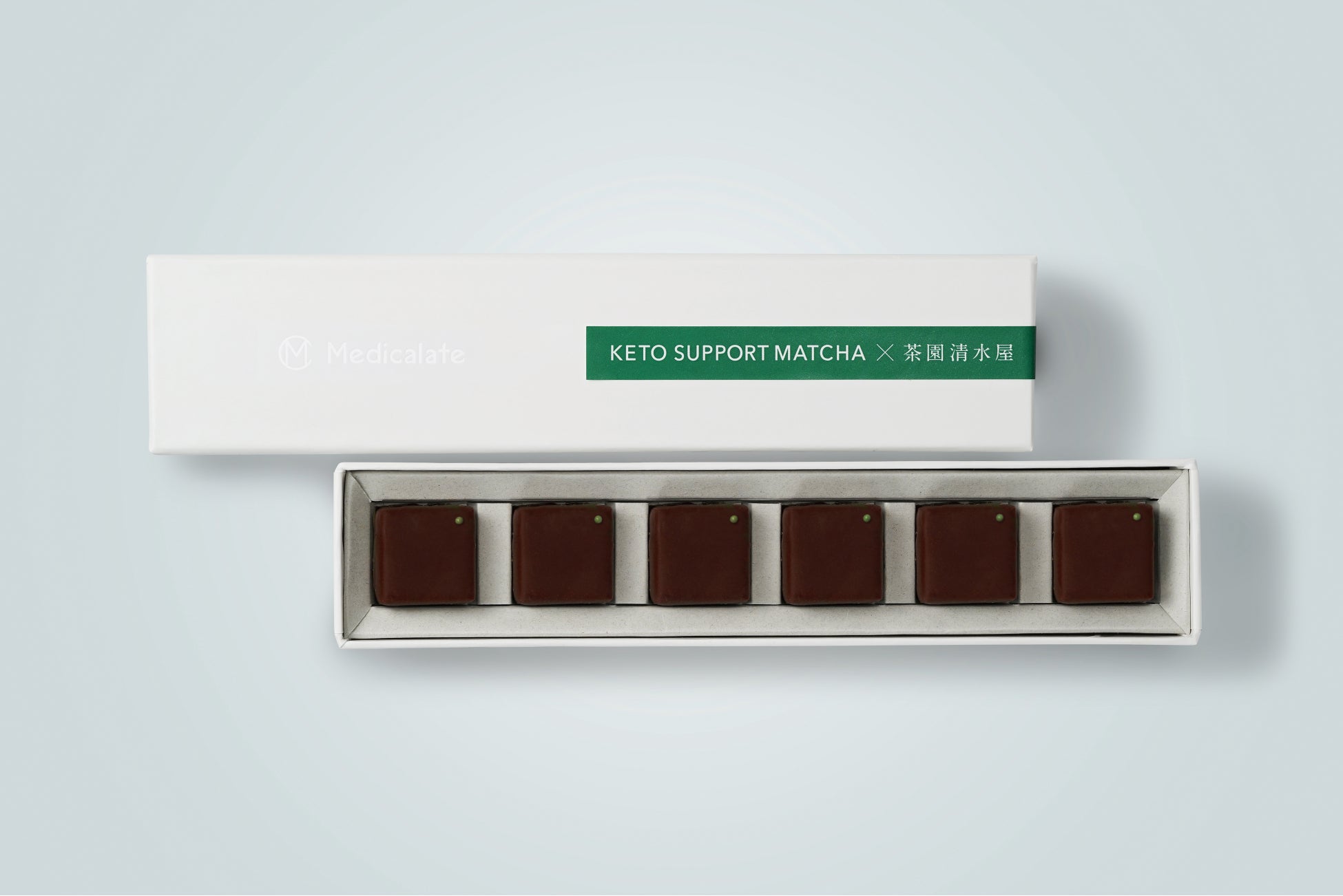「低GI」、「グルテンフリー」、「デイリーフリー」、「シュガーフリー」、「添加物フリー」で、一流のショコラティエが作るようなチョコレートを食べたいという患者さんの声から医師とパティシエが開発した、ケトサポートのMCTヴィーガンガナッシュに、茶園清水屋が有機JAS認証を取得した100%宇治市内産の手摘み一番茶の抹茶を使用。ケトジェニックを目指す方やマインドフルネスをサポートします。