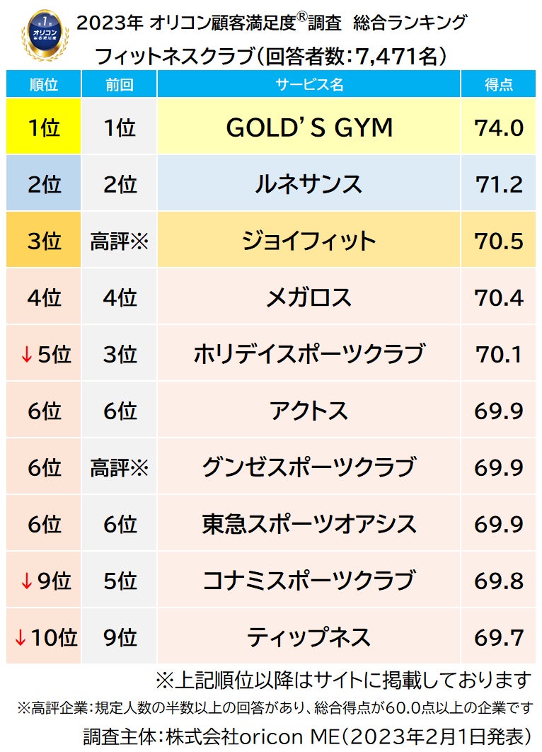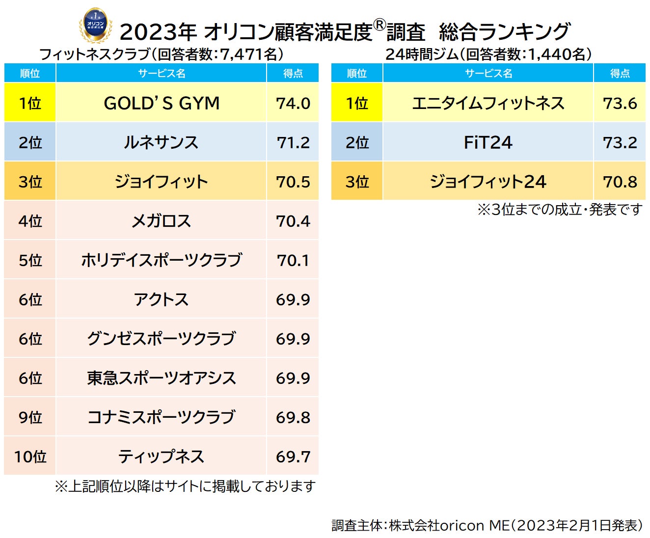 『フィットネスクラブ』ランキングの詳細はこちら:https://life.oricon.co.jp/rank_fitness/